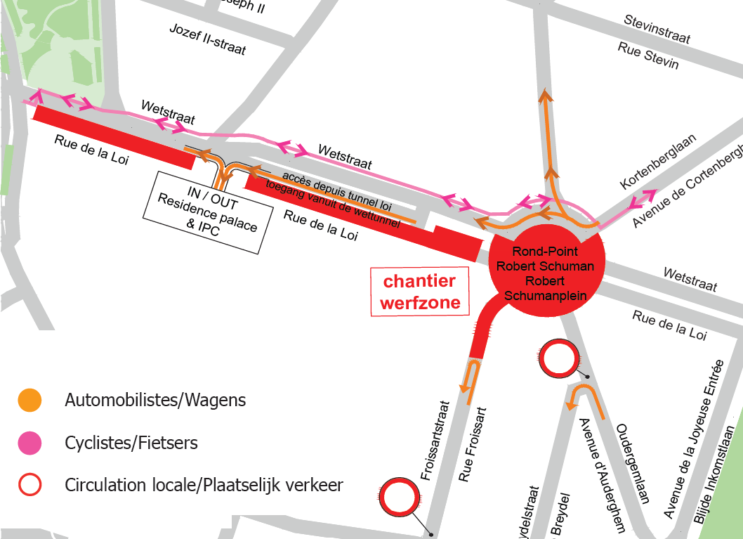 L’avenue d’Auderghem et la rue Froissart seront mises en cul-de-sac, leurs tronçons situés avant le rond-point Schuman étant accessibles uniquement à la circulation locale, aux cyclistes et aux livraisons.